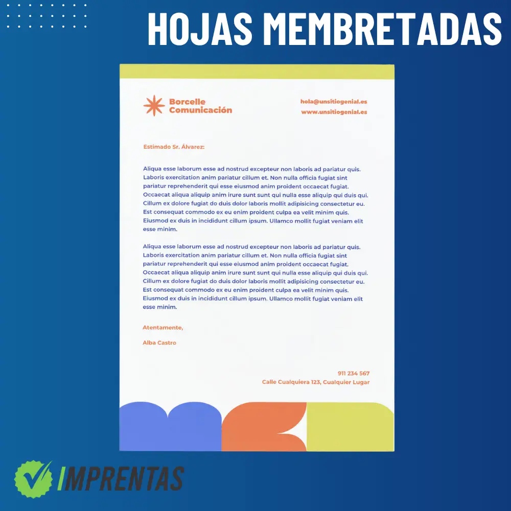 Las hojas membretadas son papeles impresos que llevan la identidad visual de una empresa o institución, como el logotipo, nombre, dirección, teléfono, correo electrónico y en algunos casos el RUC u otros datos legales. Perfectos para empresas de todo tipo.